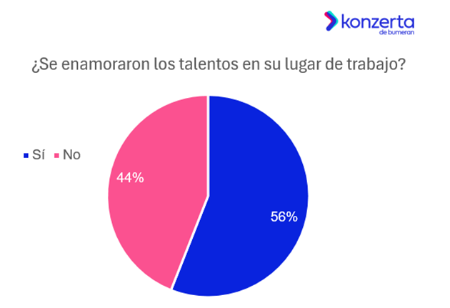 El porcentaje de talentos que se enamoró en su lugar de trabajo se encuentra 5 puntos porcentuales por encima del estudio en 2025, cuando el 51% lo mencionaba.